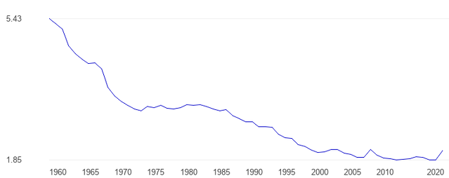 Figure 1: French military spending in percent of GDP. Source: theglobaleconomy.com[vii]