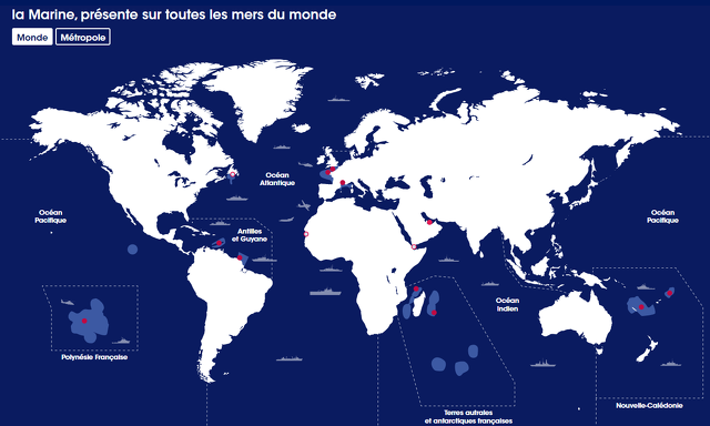 Figure 3: Global presence of the French Navy. Source: Cols Bleus[xiii]