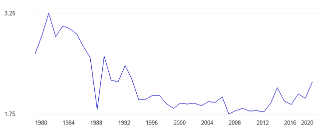 Figure 2: Poland Military spending of GDP. Source: The Global Economy[15]
