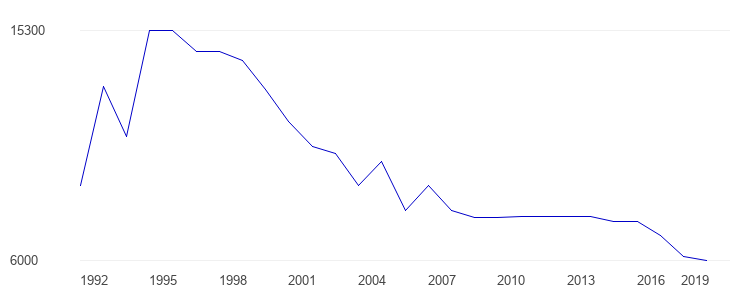 Number of active personnel in the Moldovan armed forces, 1992-2019