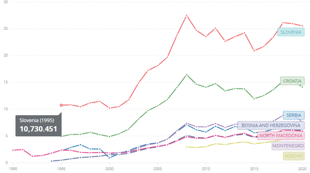 THE WORLD BANK OFFICIAL: GDP per capita (current US$) – Serbia, Croatia, Bosnia and Herzegovina, North Macedonia, Slovenia, Montenegro, Kosovo. Access: https://data.worldbank.org/indicator/NY.GDP.PCAP.CD?locations=RS-HR-BA-MK-SI-ME-XK (02/08/2022)