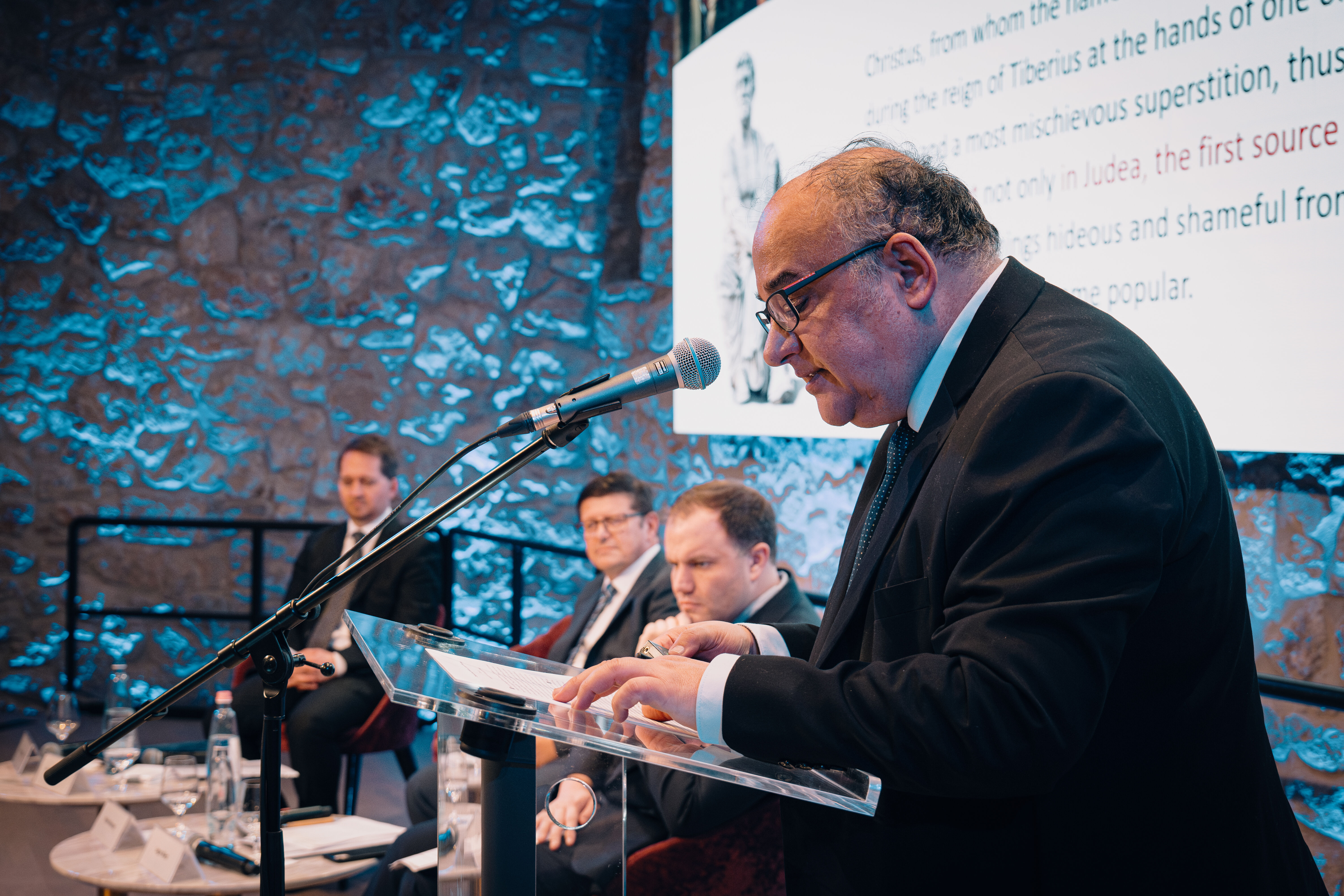 A második panelbeszélgetés előadói Dr. Jürgen Buehler, a Jeruzsálemi Nemzetközi Keresztény Nagykövetség (ICEJ) elnöke, Kovács Péter, a Hungary Helps Ügynökség főigazgatója, Prof. Dr. Grüll Tibor, a Pécsi Tudományegyetem ókortörténeti tanszékének vezetője, valamint Morvay Péter, újságíró voltak. A beszélgetést dr. Logan West, a Danube Institute vendégkutatója moderálta.